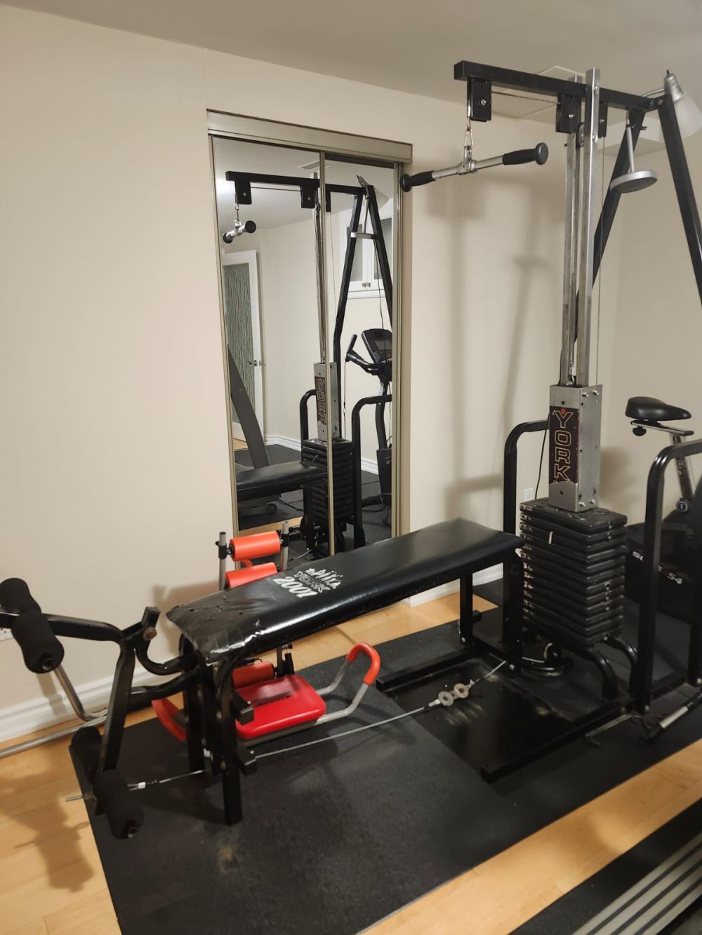 Full body workout, weight lifting, upper body, legs, stomach etc. , includes pressing bench and all the attachments. Good condition. Super deal. Ready for pick up
