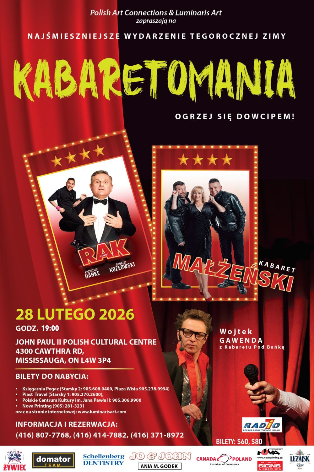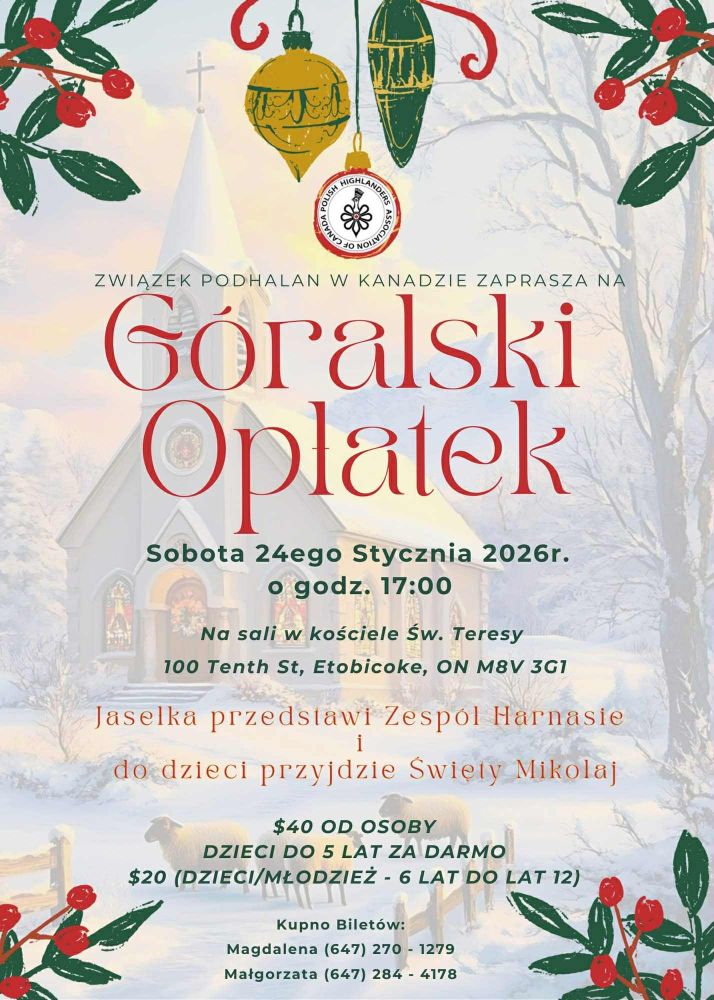 Rezerwujcie miejsca — ilość biletów ograniczona 🎟 Bilety: 📞 416-893-3588 (Anna) 📞 416-655-5970 (Dagmara) Cena: $95 | Bar płatny